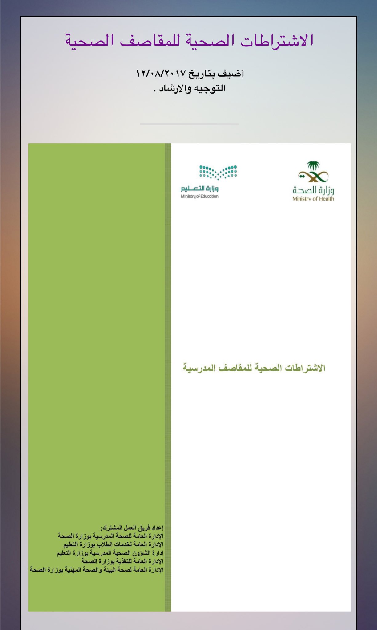 التوجيه والإرشاد A Twitter الدليل الموحد للإشراف على المقاصف المدرسية من وزارة الصحة ووزارة التعليم Https T Co T9jxpd1euh الاشتراطات الصحية للمقاصف الصحية Https T Co Pm4tk7n4gf Https T Co 5wn16mi4tm Https T Co Hb0kxkb9km