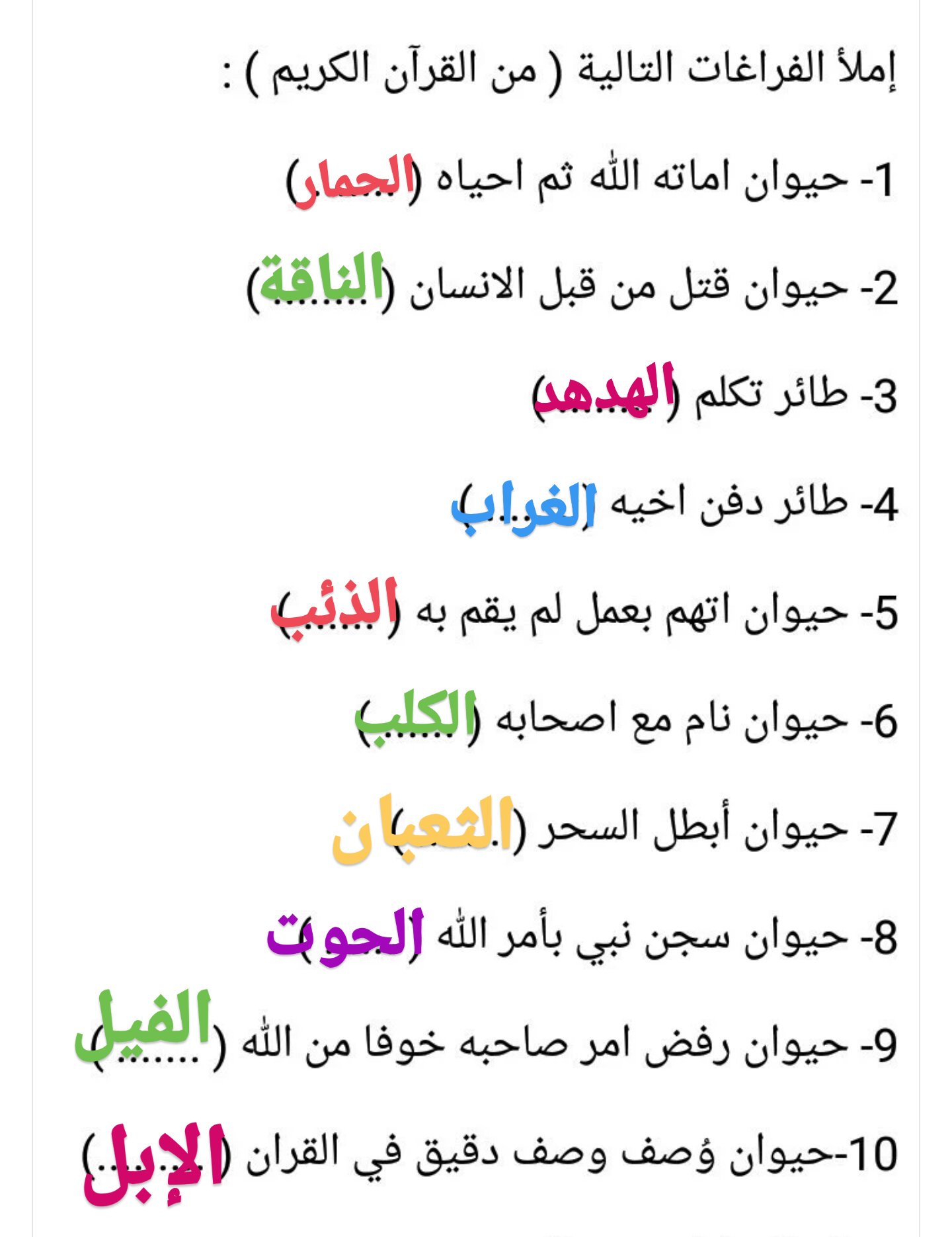 حايلي فاصل 𓅓 تابعنا وسع صدرك On Twitter الحظر الكامل إملأ الفراغات التالية من القرآن الكريم 6 حيوان نام مع أصحابه 7 حيوان أبطل السحر 8 حيوان