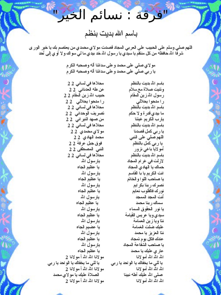 كلمات اغنية مولاي صلي وسلم جريدة الفراعنة